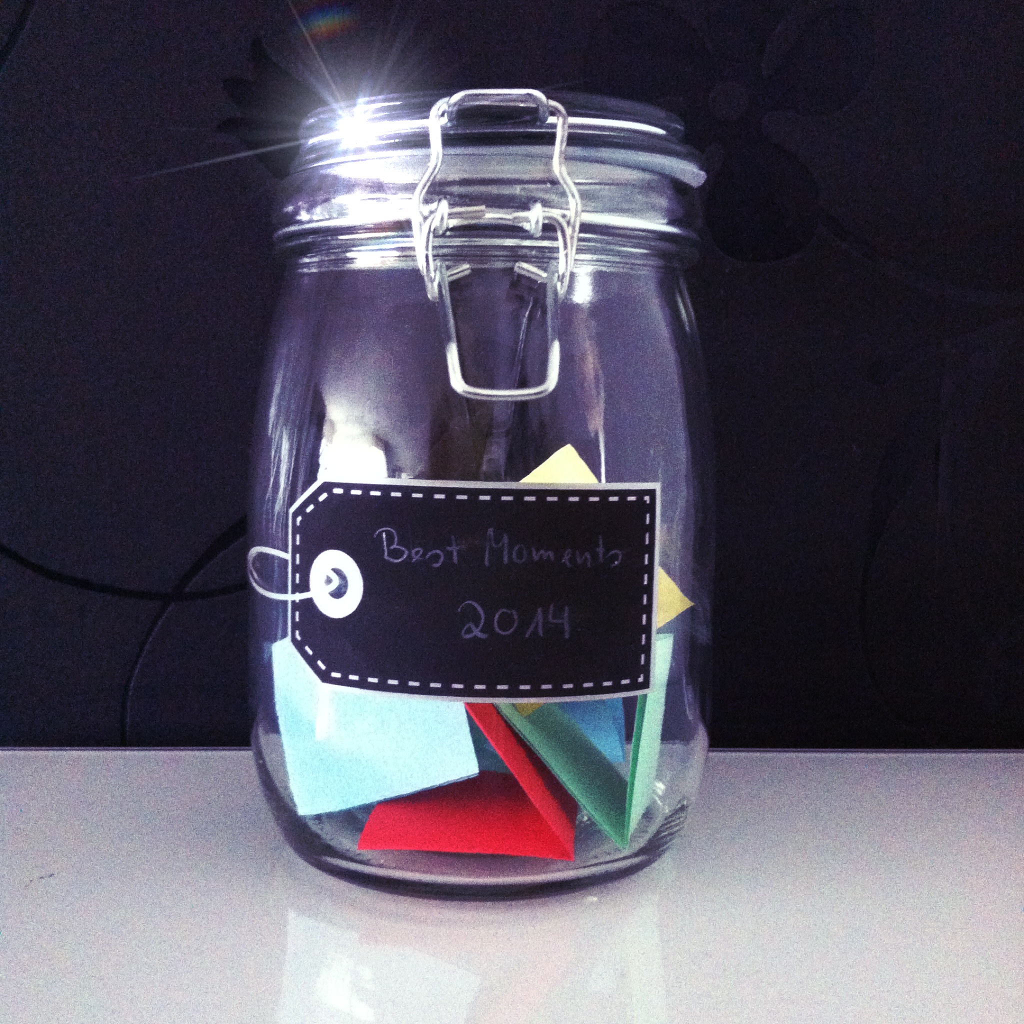 Damit mir dies in 2014 nicht wieder passiert, habe ich jetzt ein „Best Moments 2014“-Glas. Da kommt immer ein Zettel rein, wenn ich etwas Tolles erlebt habe. Auf diesem schreibe ich den tollen Moment und das Datum.
